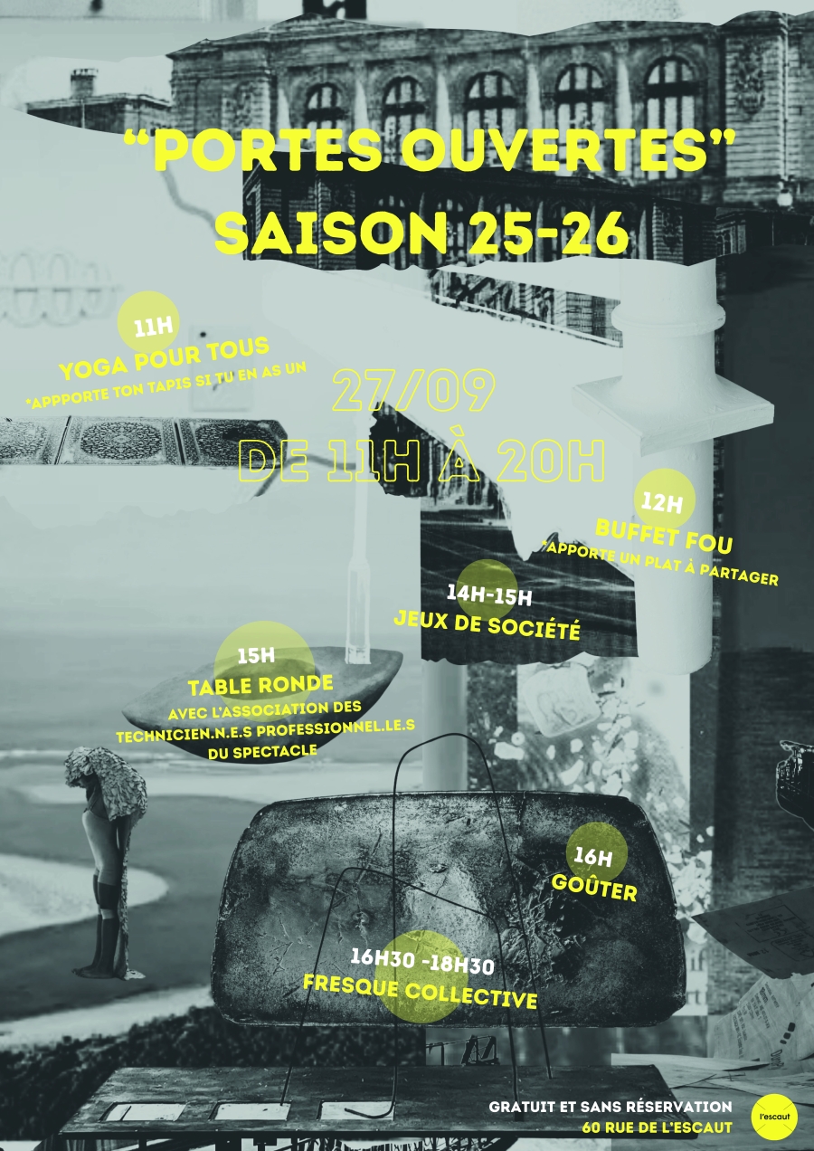 Samedi 27 septembre, de 11h à 20h, l’Escaut en collaboration avec l'ATPS et les artistes résidents de la saison, vous ouvre ses portes et vous invite à découvrir le thème de sa saison 25-26.